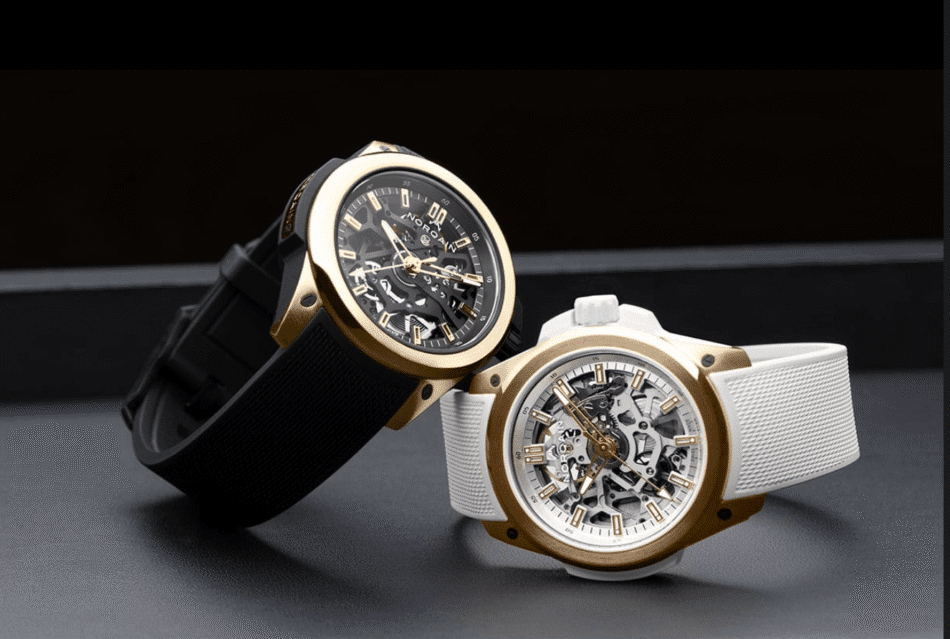 Ambas interpretaciones de este Wild ONE 39mm Skeleton están fabricadas con oro PX Impact, u “oro responsable” procedente de minas artesanales. Norqain, fiel a su compromiso con la sostenibilidad, la ética y la responsabilidad social, adquiere este material de su socio PX Group que garantiza la trazabilidad del oro además de asegurarse de que esté libre de mercurio.